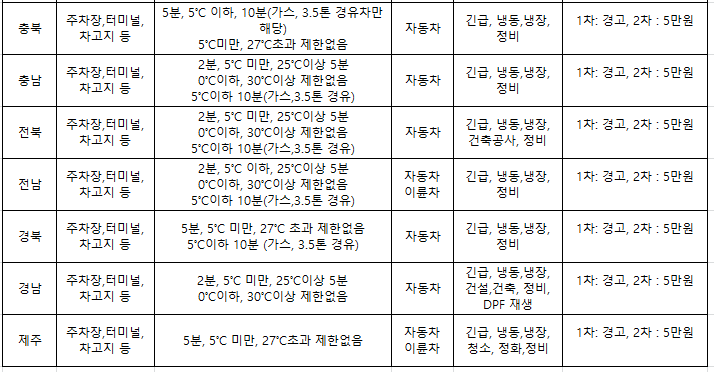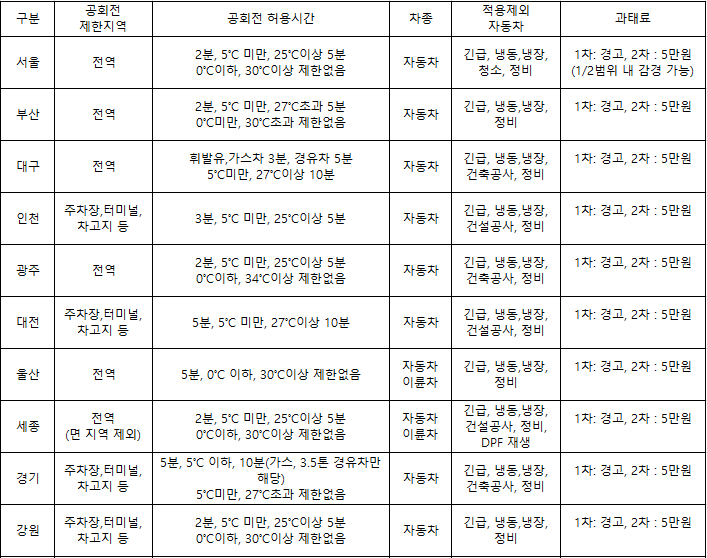 각 시도별 공회전 제한 조례 규정사항에 따라 차이는 있지만 이번 기회에 한 번씩 확인해 보세요.